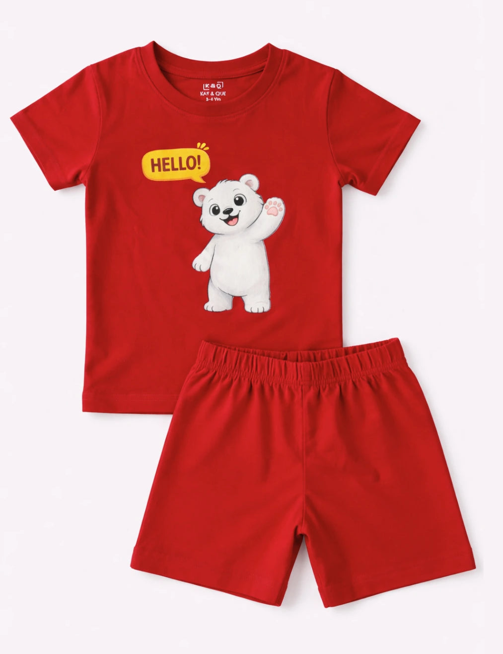 Red Hello Bear Shorts Set (Unisex)