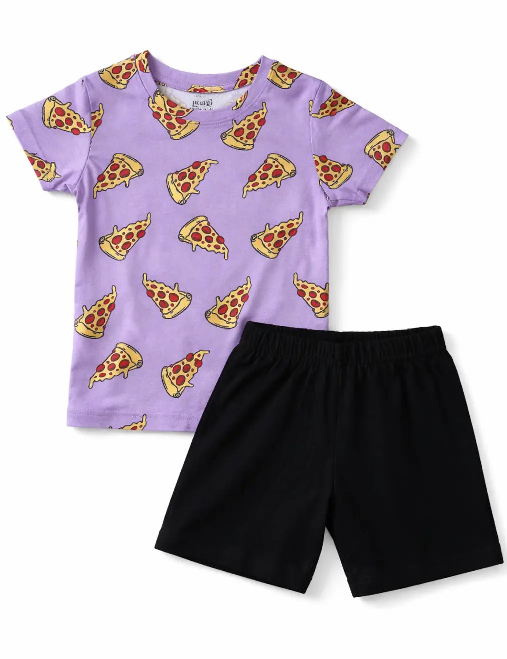 Purple Black Pizza Contrast Shorts Set (Unisex)