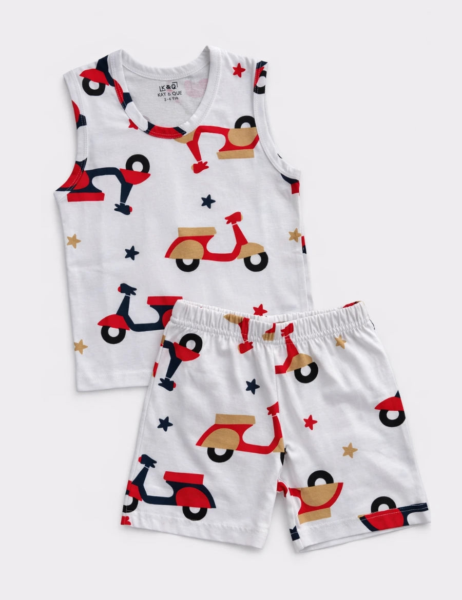 White Scooter Sleeveless with Shorts (Unisex)