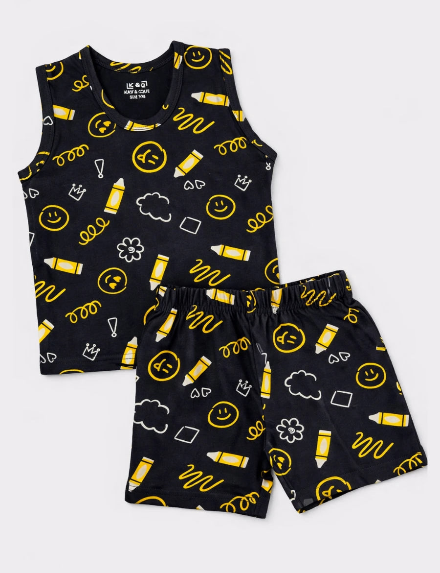 Black Crayon Sleeveless with Shorts (Unisex)