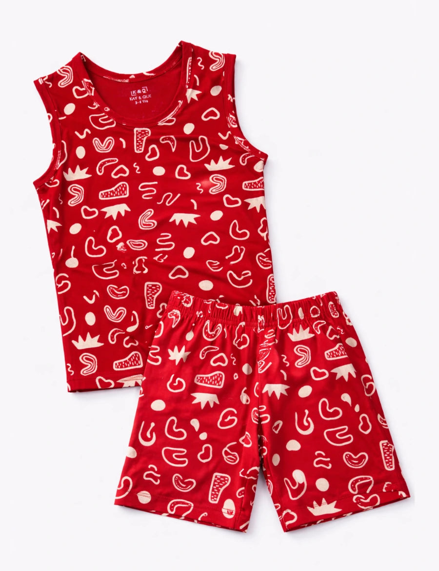 Red Abstract Sleeveless with Shorts (Unisex)