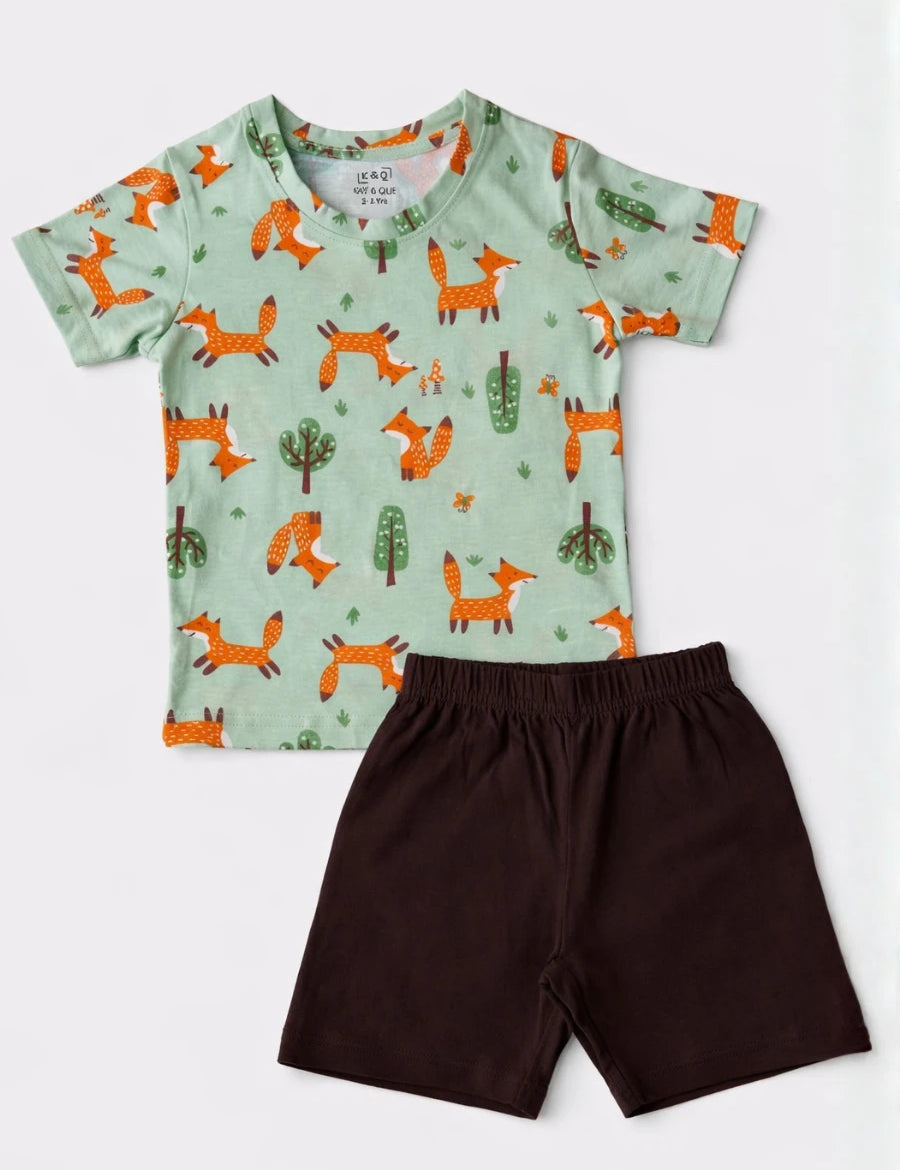 Green Brown Fox Contrast Shorts Set (Unisex)