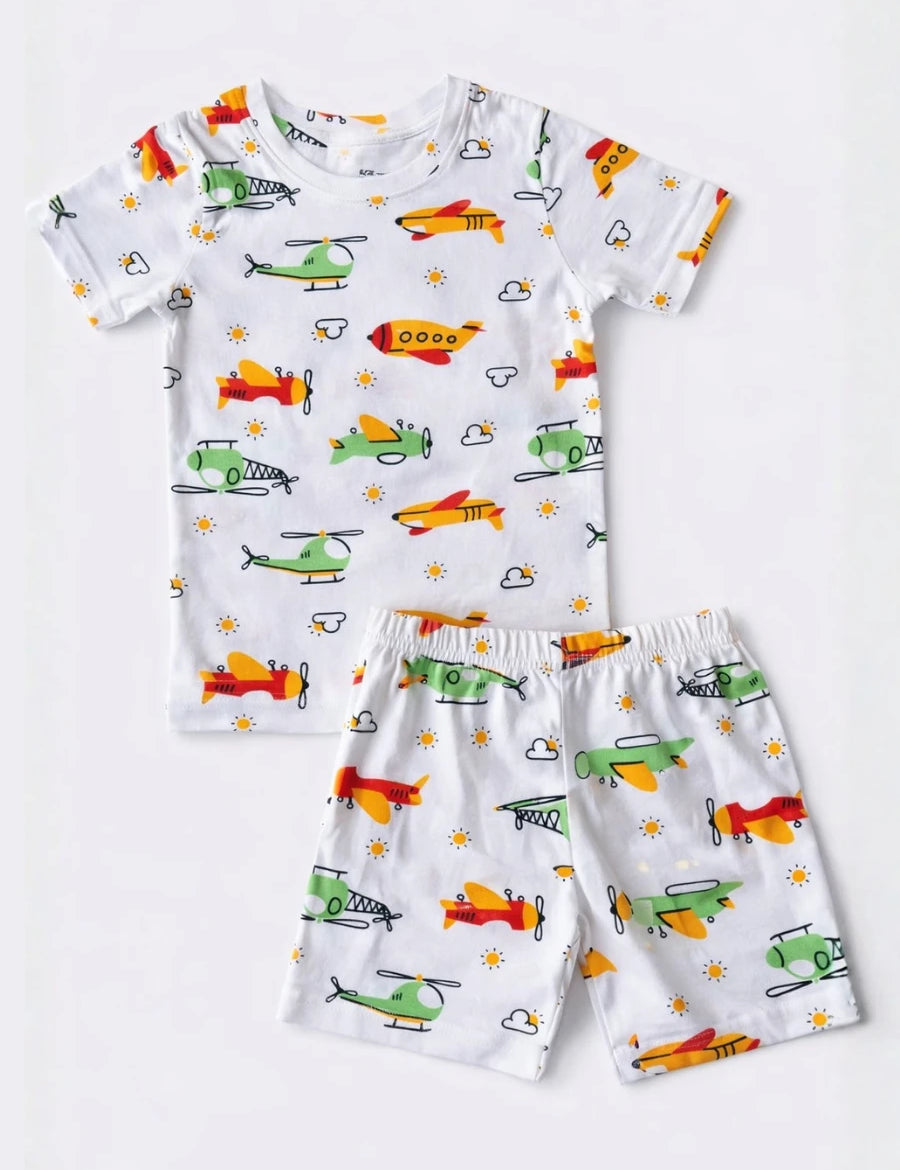 White Aeroplanes Coord Set with Shorts (Unisex)