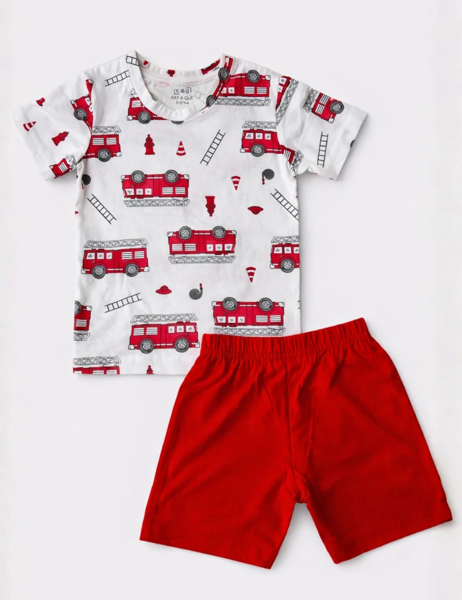 White Red Firetruck Contrast Shorts Set (Unisex)