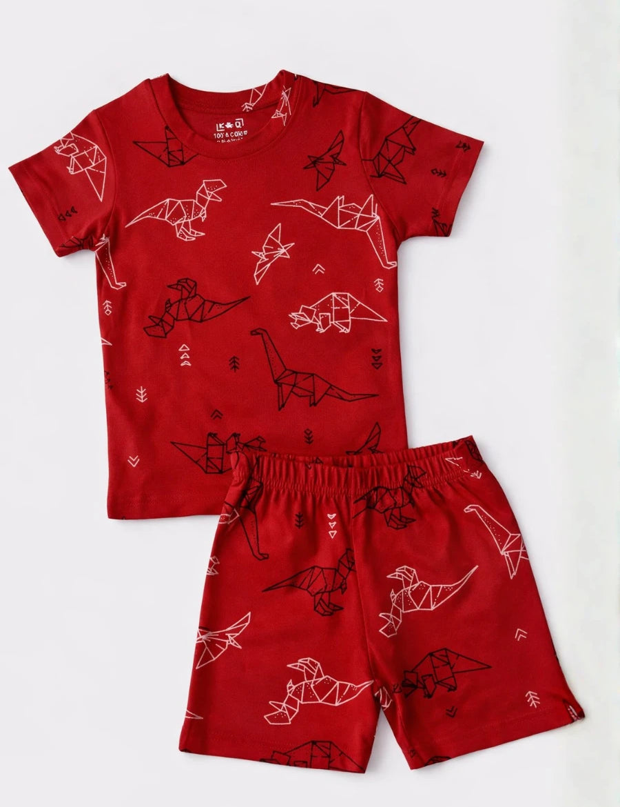 Red Dino Coord Set with Shorts (Unisex)