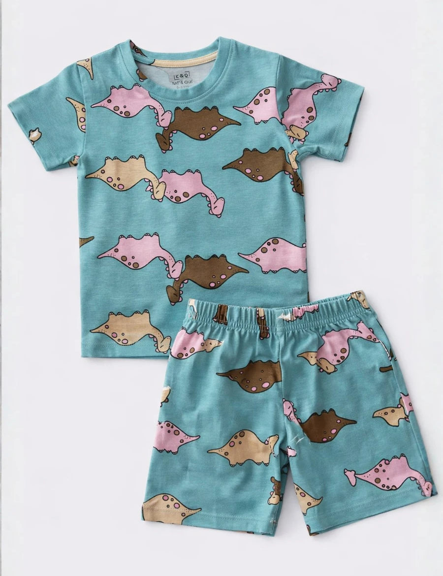 Aqua Dino Coord Set with Shorts (Unisex)