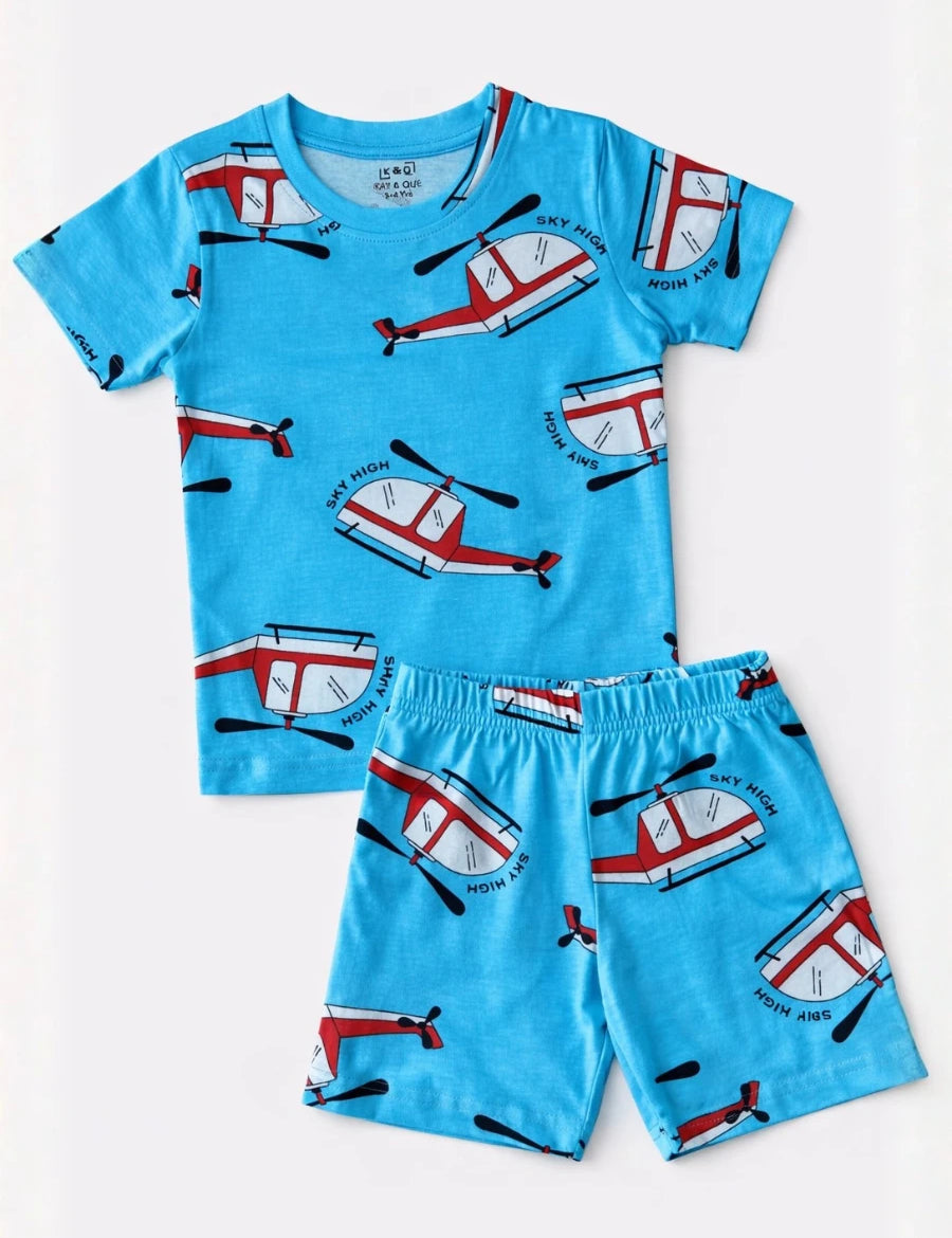 Blue Helicopter Coord Set with Shorts (Unisex)