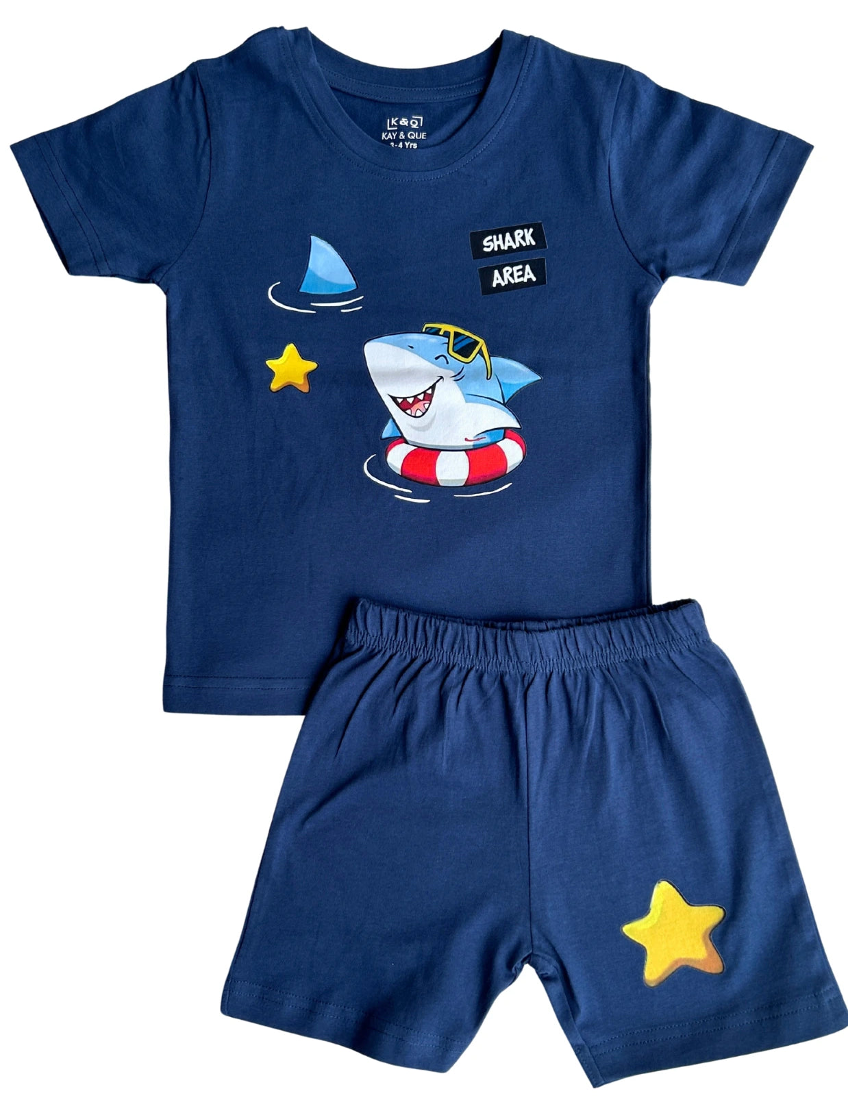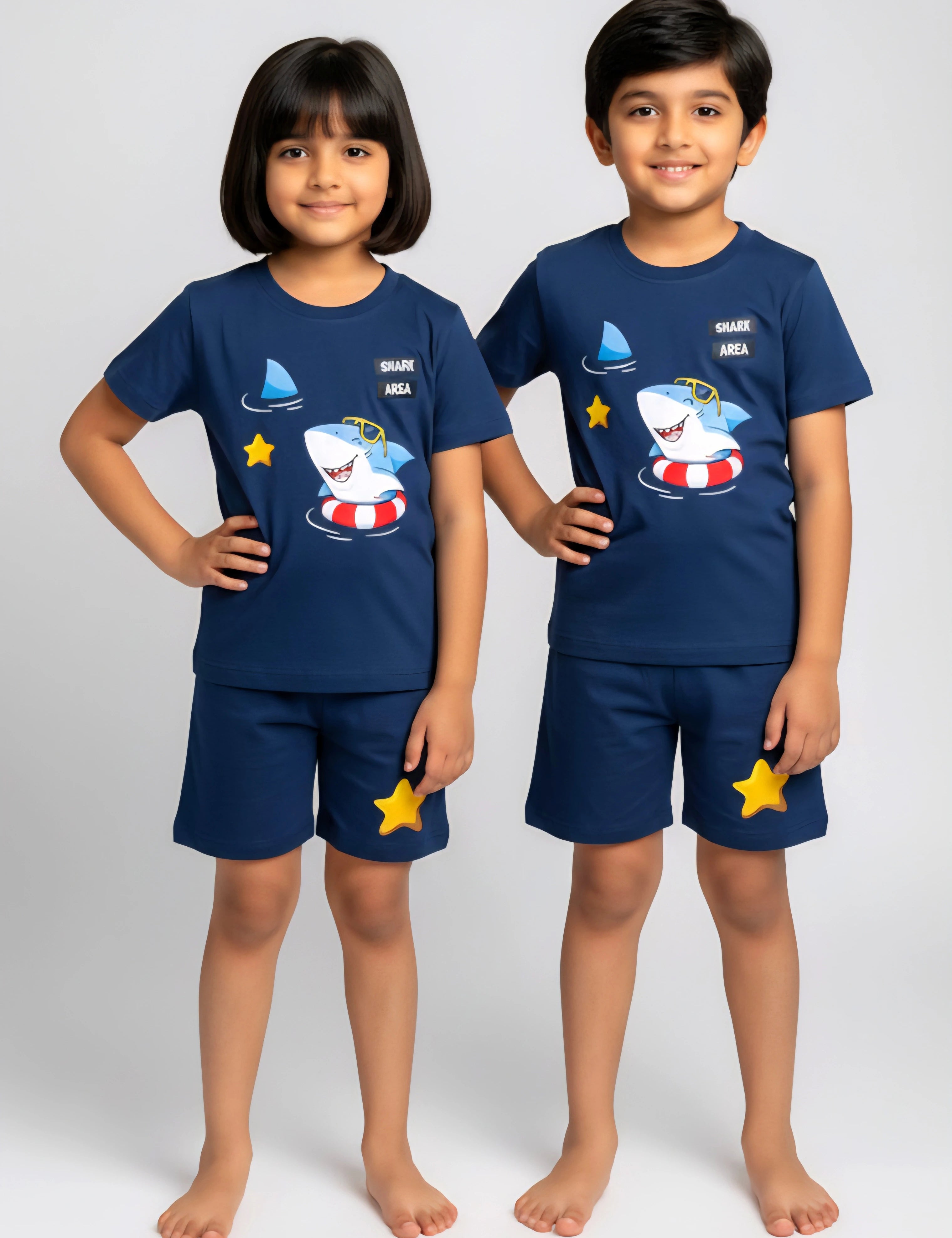 Orange Blue Shark Coord Set with Shorts (Unisex)