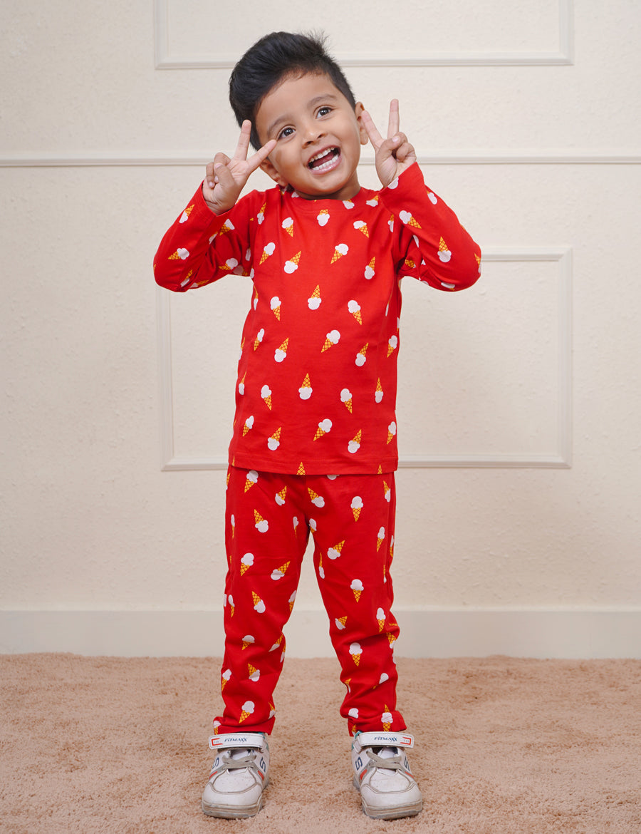 Red Icecream Full Sleeve Pyjama Set (Unisex)