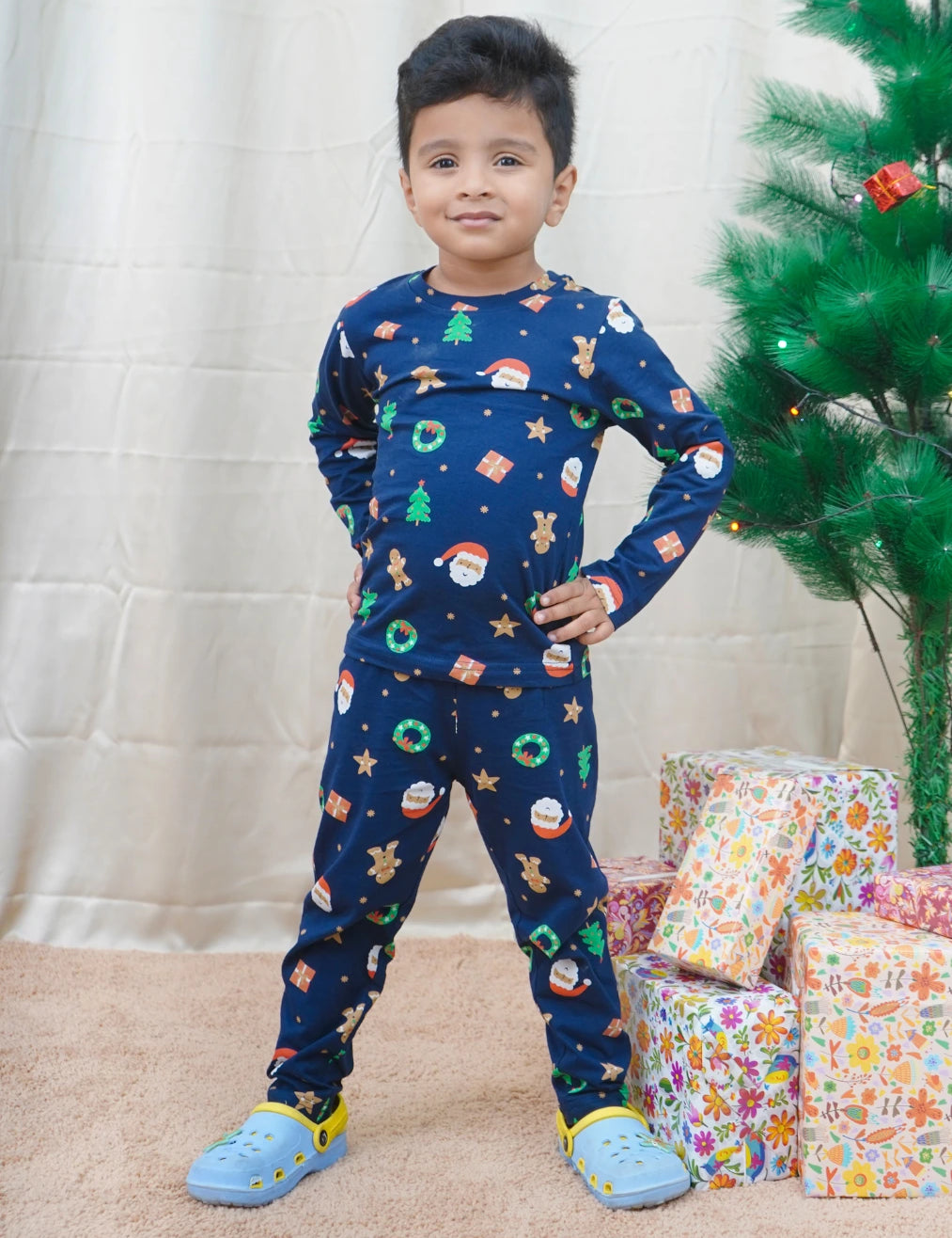 Navy Santa Full Sleeve Pyjama Set (Unisex)